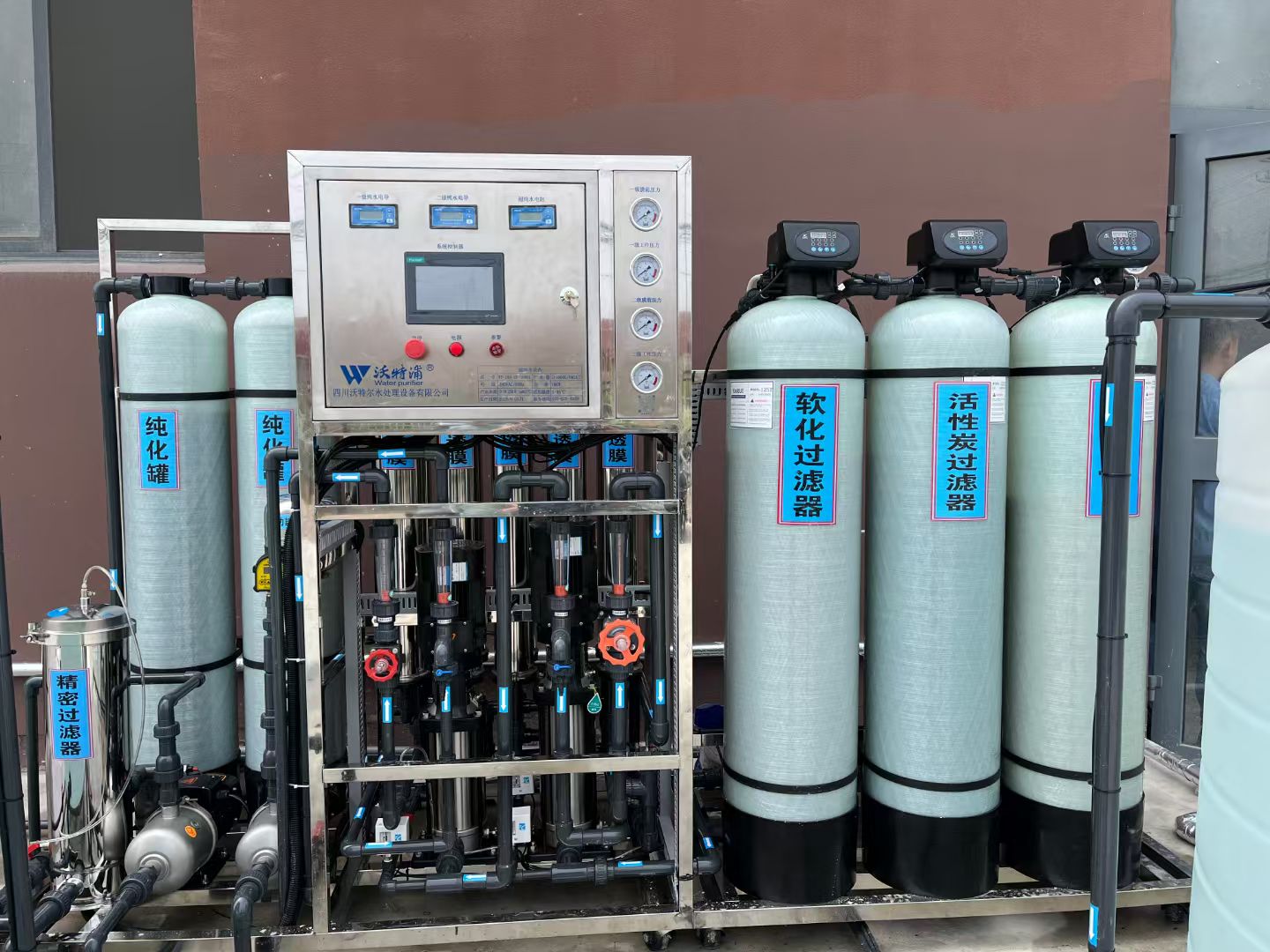 3、純水機(jī)軟化器:去除鈣鎂離子,防止 RO 膜結(jié)垢。需配備鹽箱和自動(dòng)再生功能。