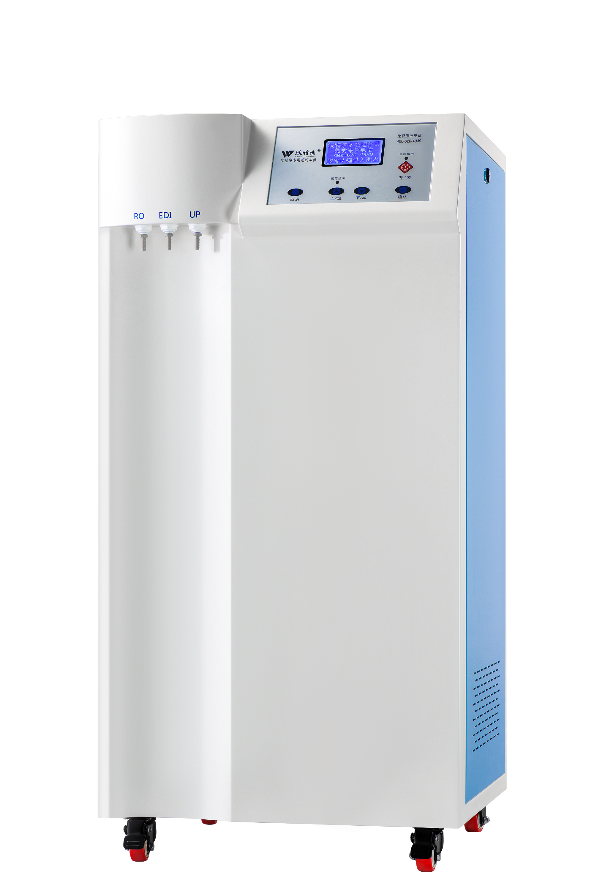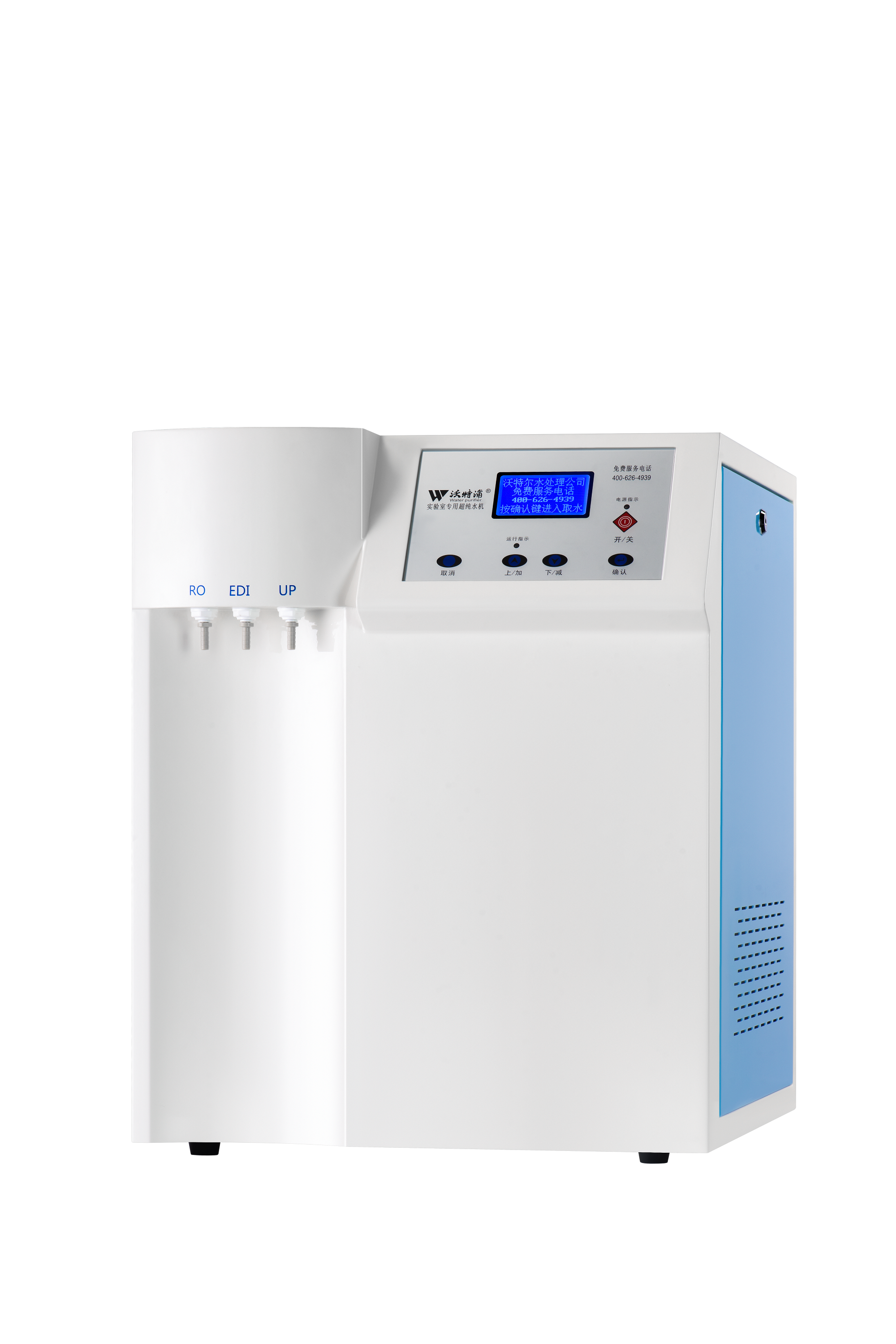 耗材管理:耗材失效真人語音報警及更換提示,耗材失值可據實際需要在1-18.25MΩ.cm間設;耗材更換自動識別,便于更好地管理設備。